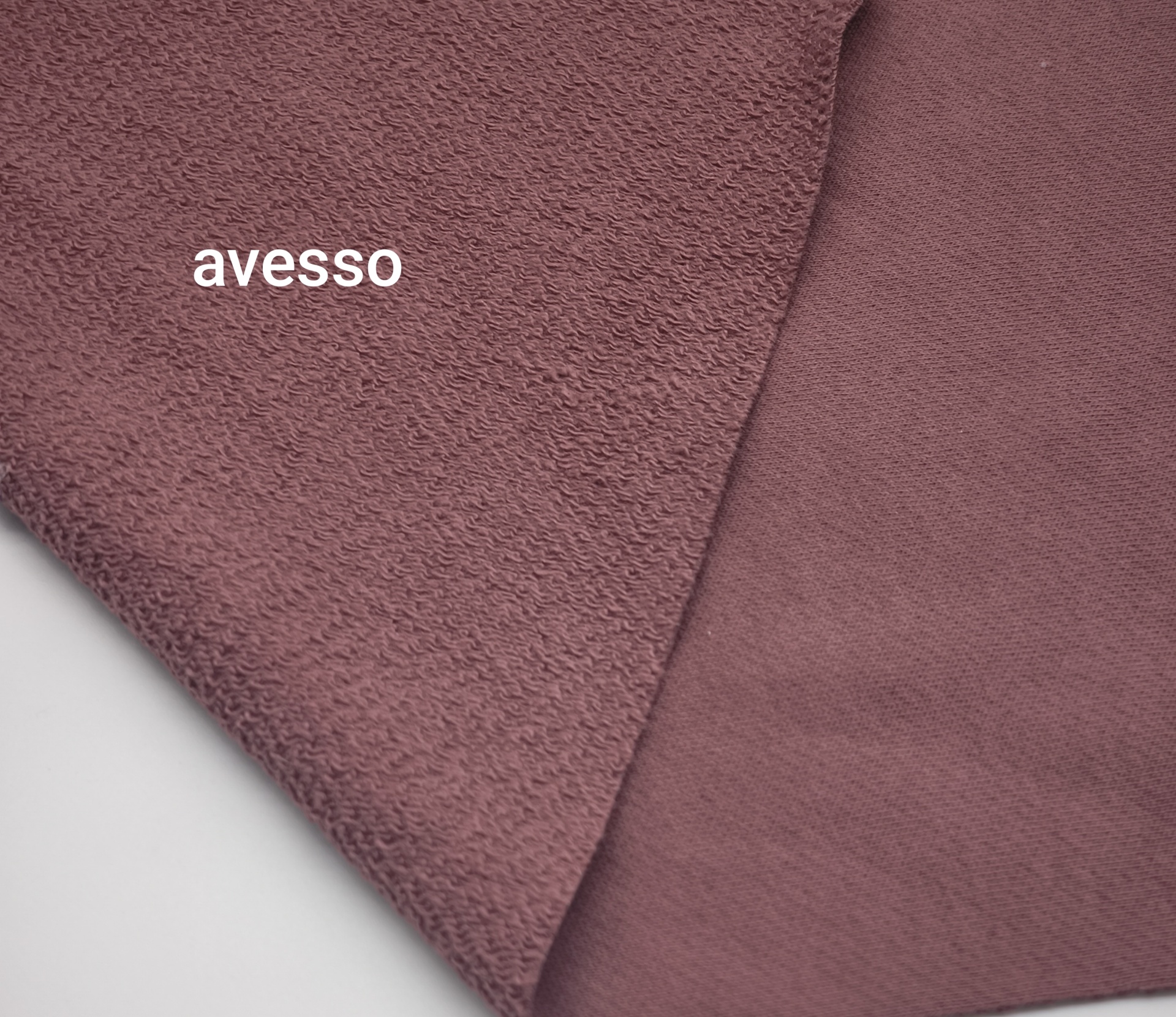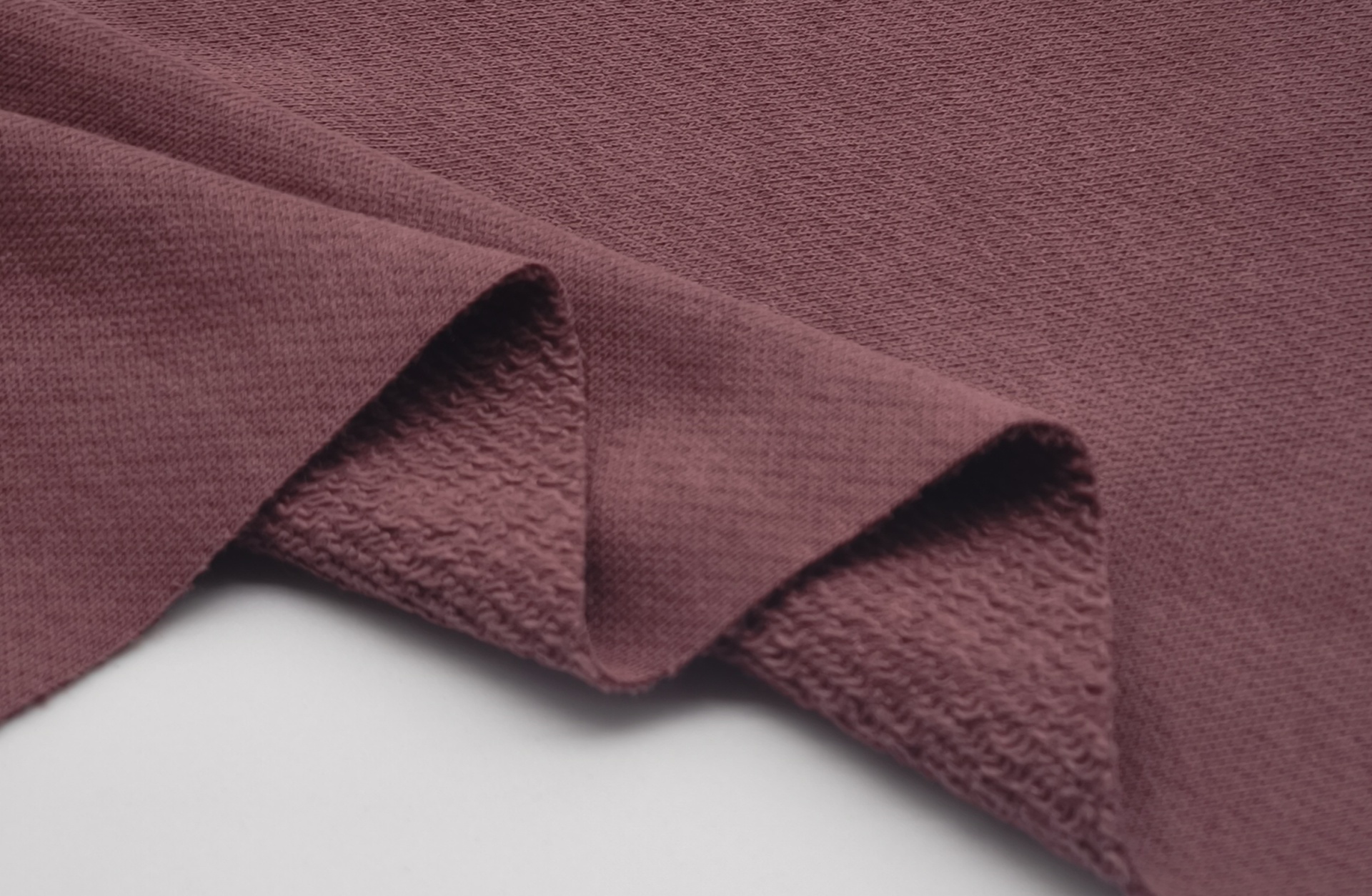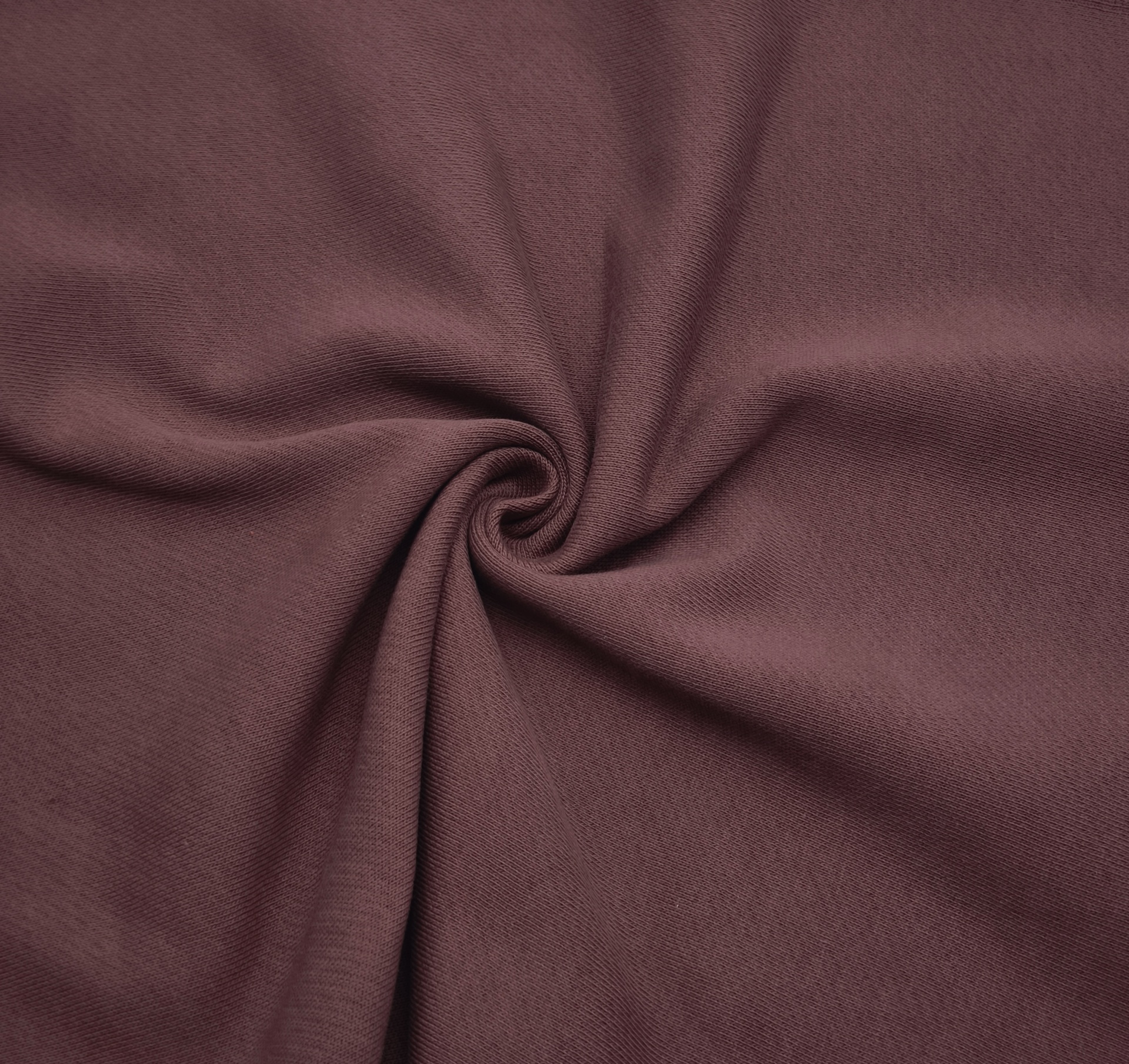 Malha sem carda de tom bordeaux, macia, bom caimento, maleável