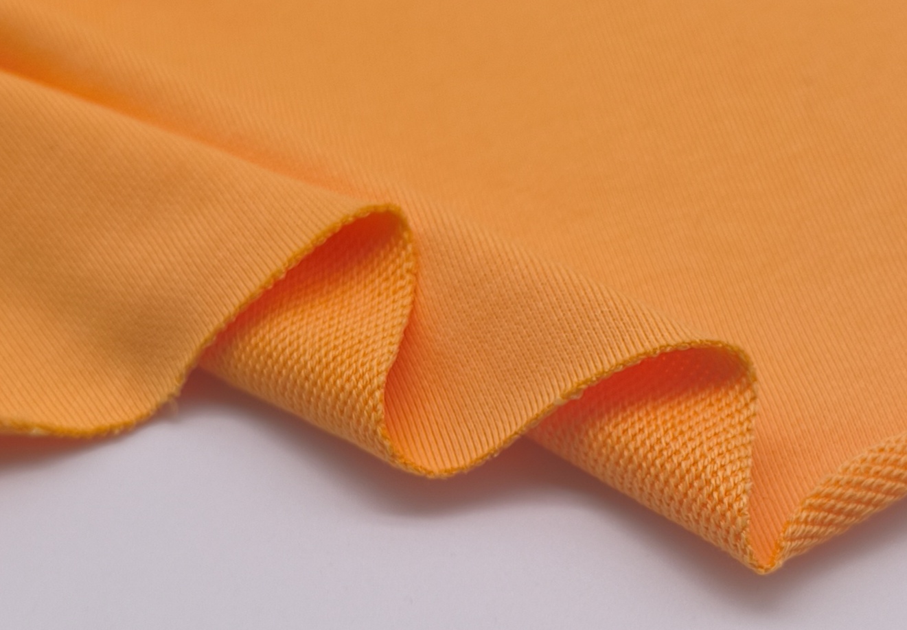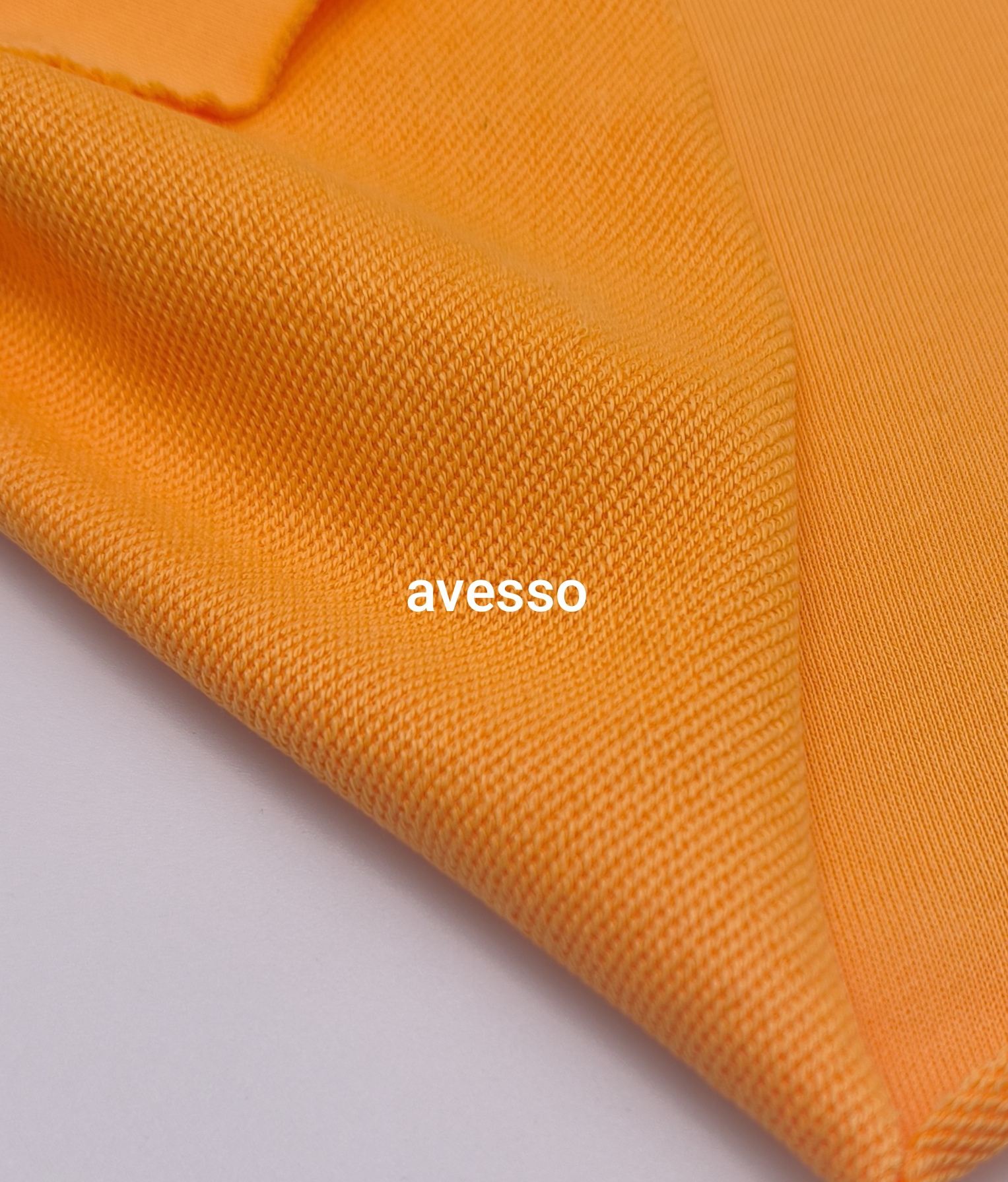 Malla sin carda de tono anaranjado, suave, con buena caída y fresca.