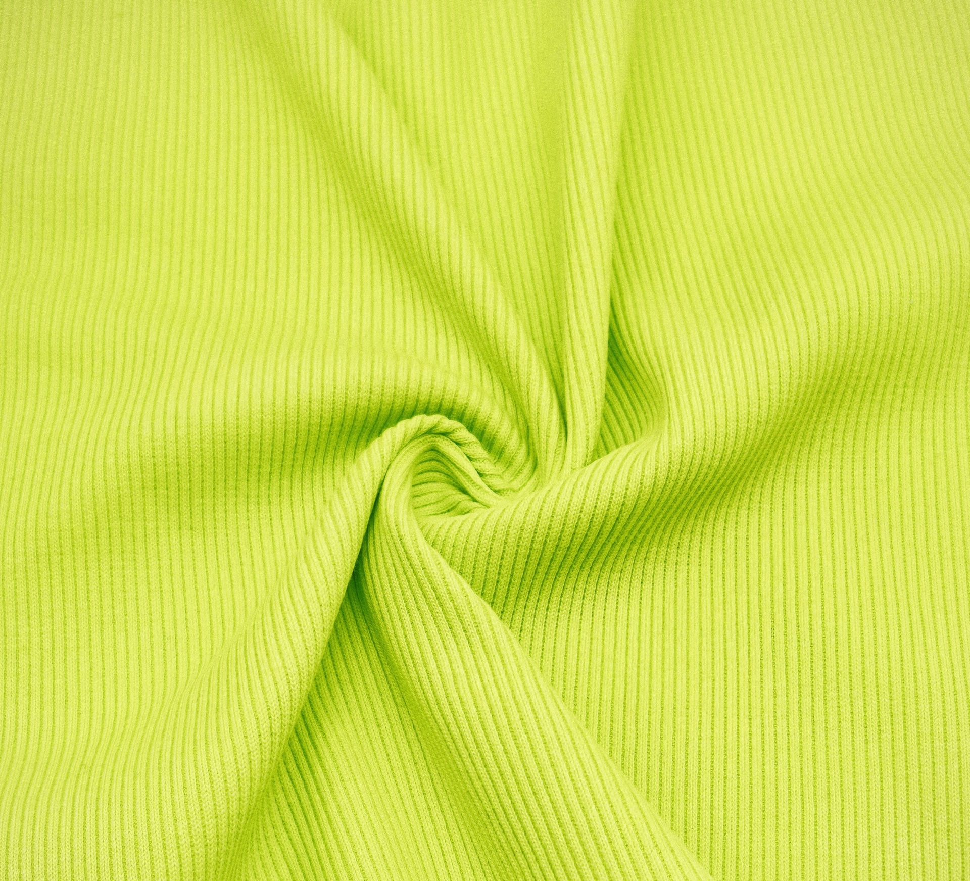 Malla de color verde fluorescente, suave, maleable, con buena caída y elasticidad.