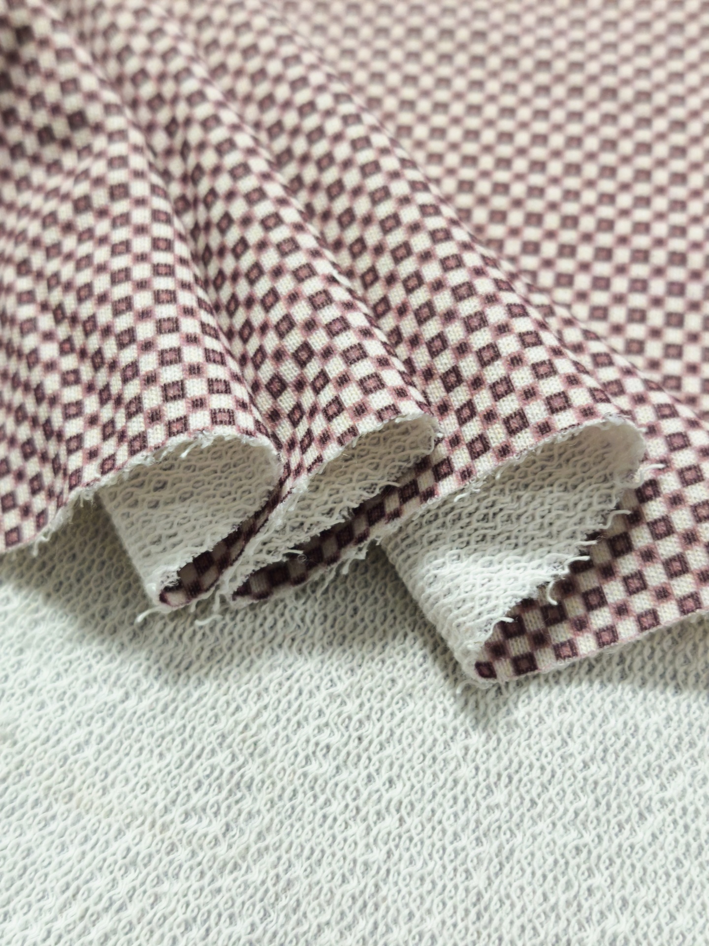 Cor de fundo branco, desenhos na cor bordô