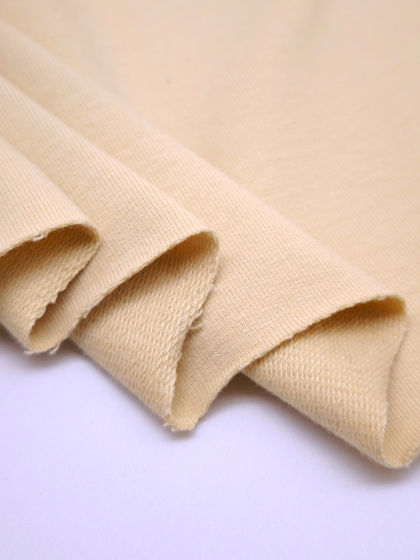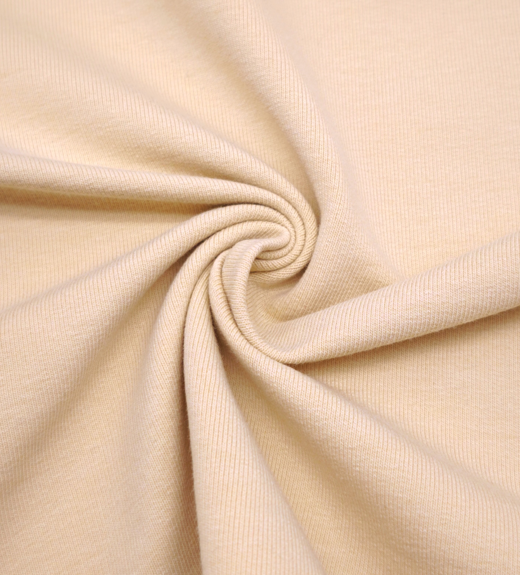 Malha felpa em ponto italiano, com boa elasticidade, toque suave e fresco
