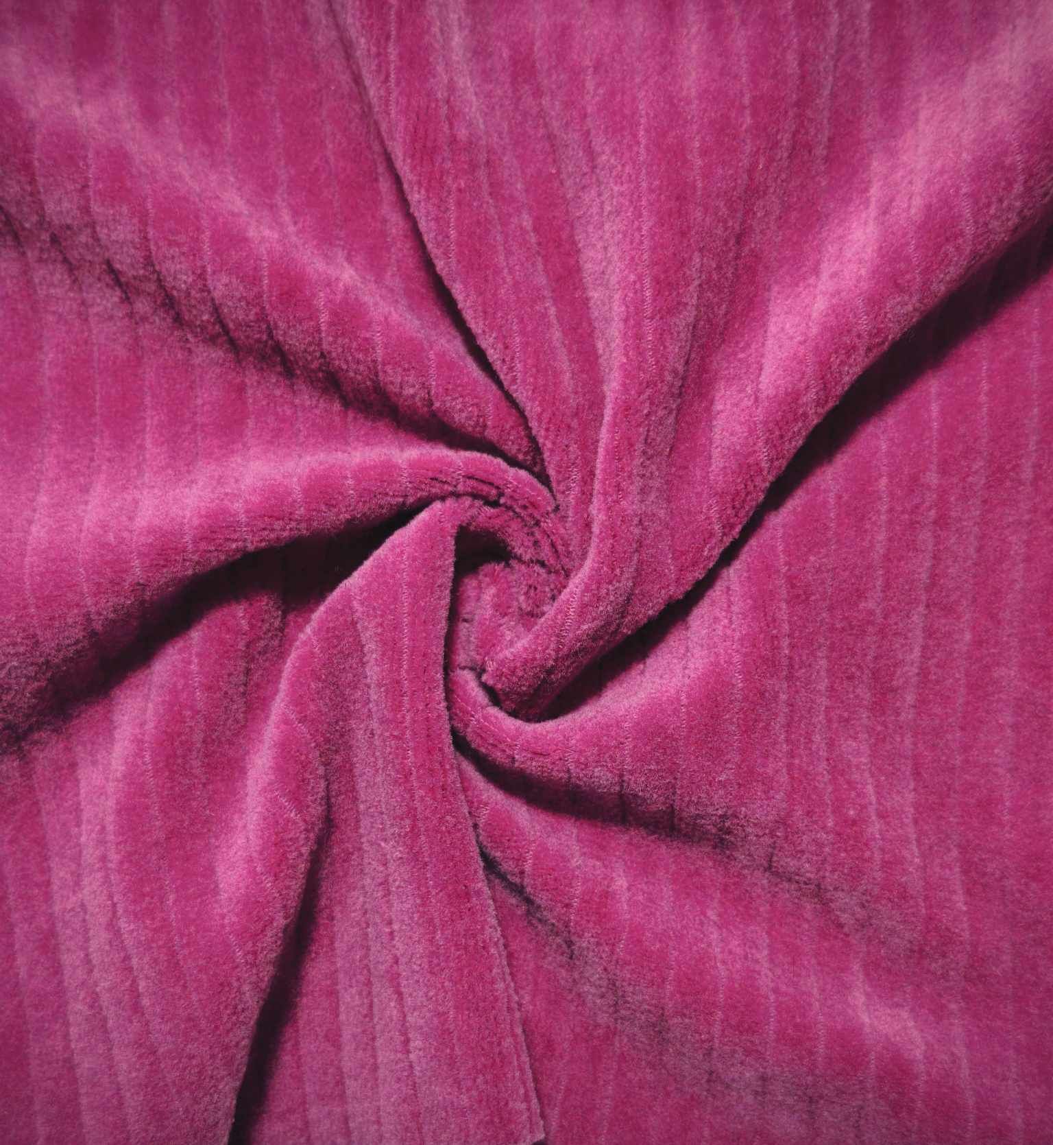 Tejido aterciopelado, suave, con buena elasticidad, muy cómodo, acanalado imitación de bombasina.
