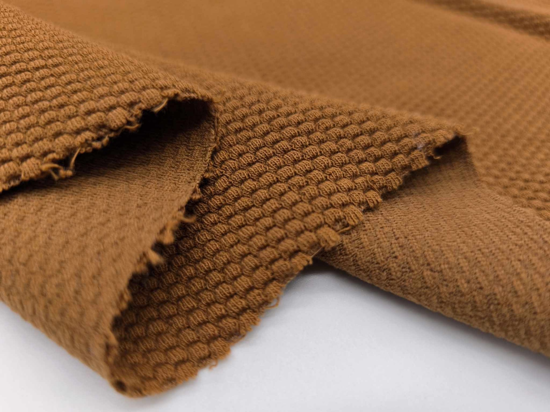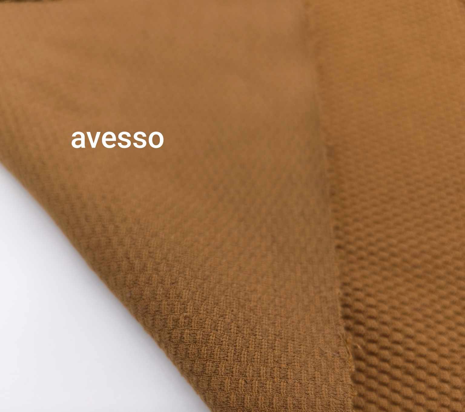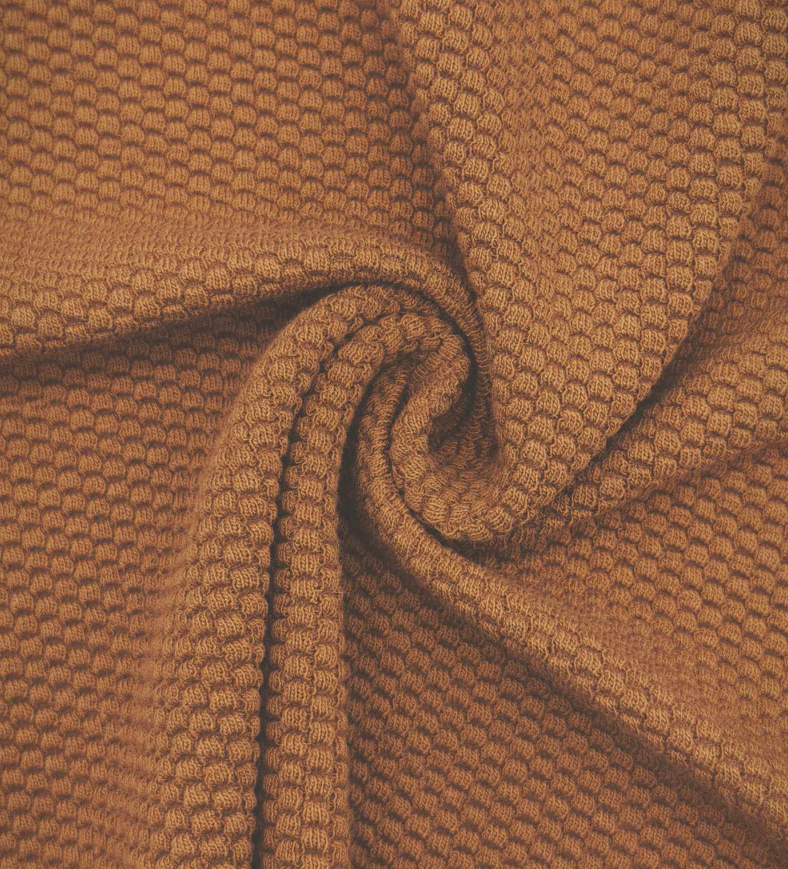 Malha em ponto Interlock Jaquard, com textura e relevo, padrão losango em tom avelã