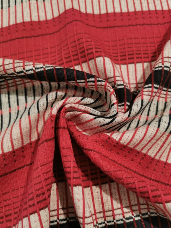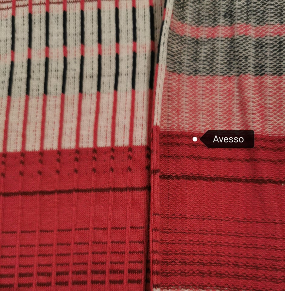 Malha fina, fresca, listras ligueiramente na diagonal