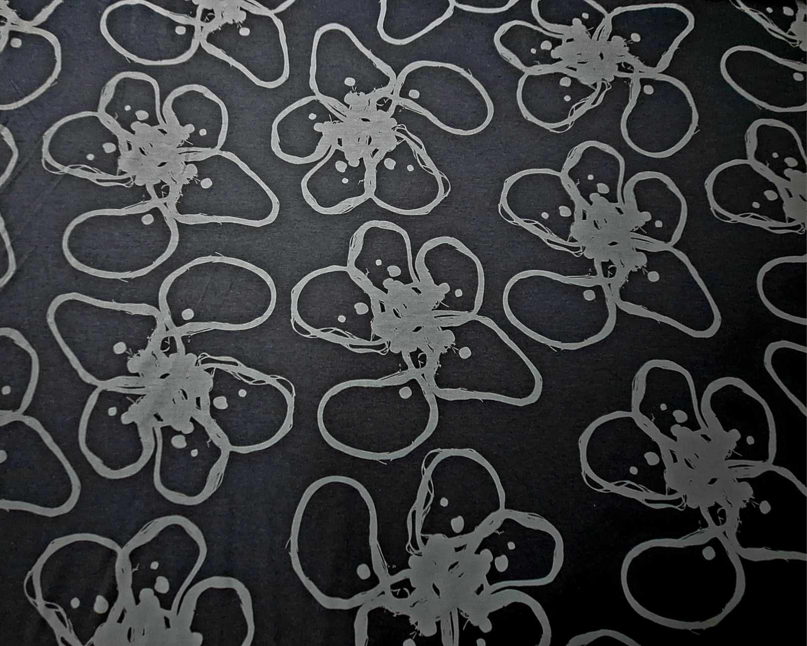 Malha de cor base preto com estampado em cinza, fresca, macia, maleável, boa elasticidade