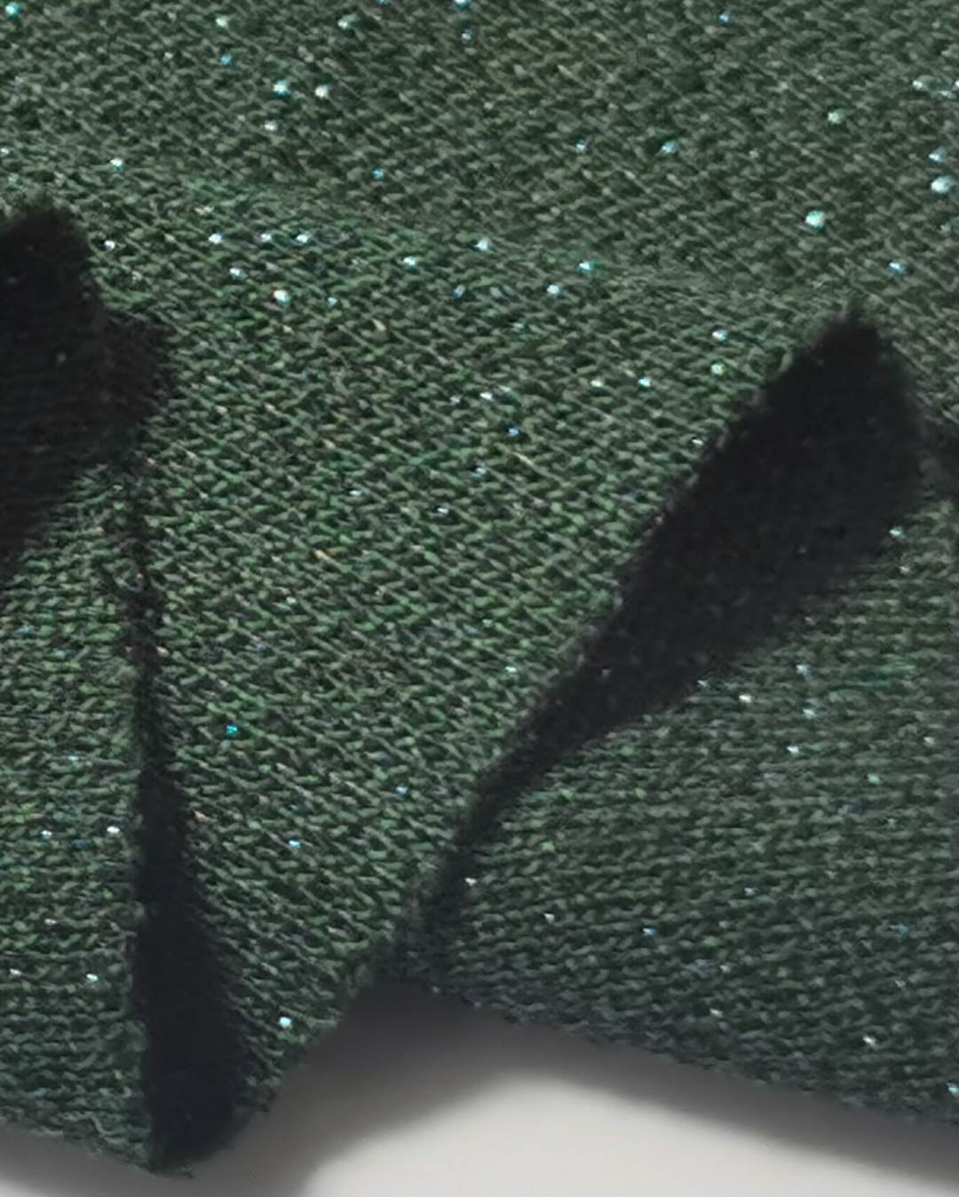 Malha de tons verde garrafa com pequenos brilhos em verdes