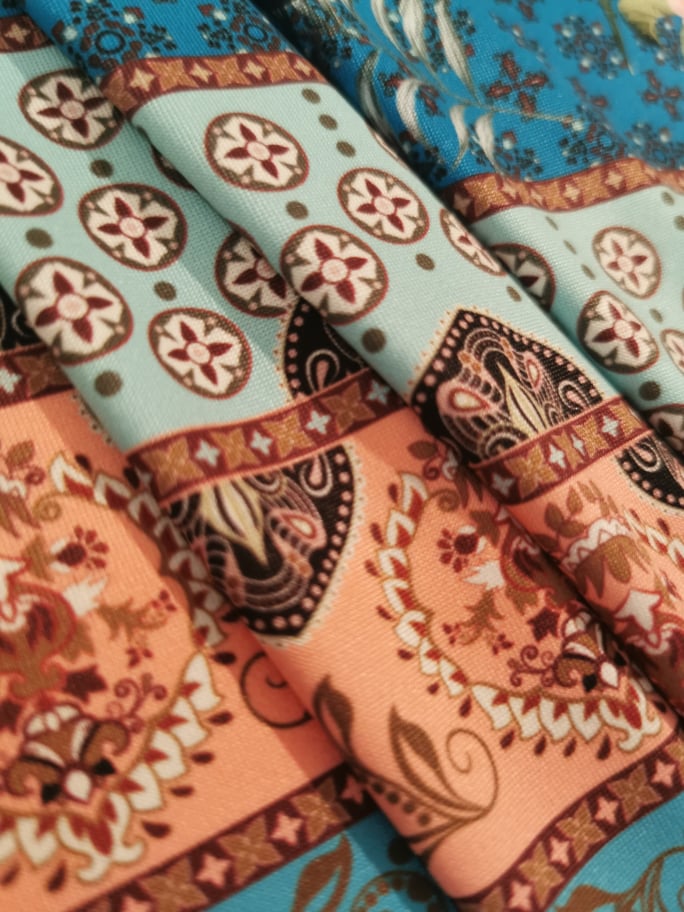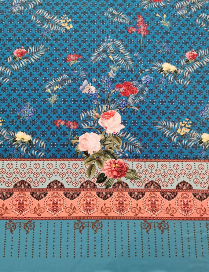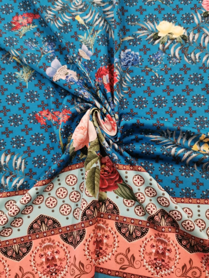 Malla Jersey Panel con elastano FLORAL TURQUESA