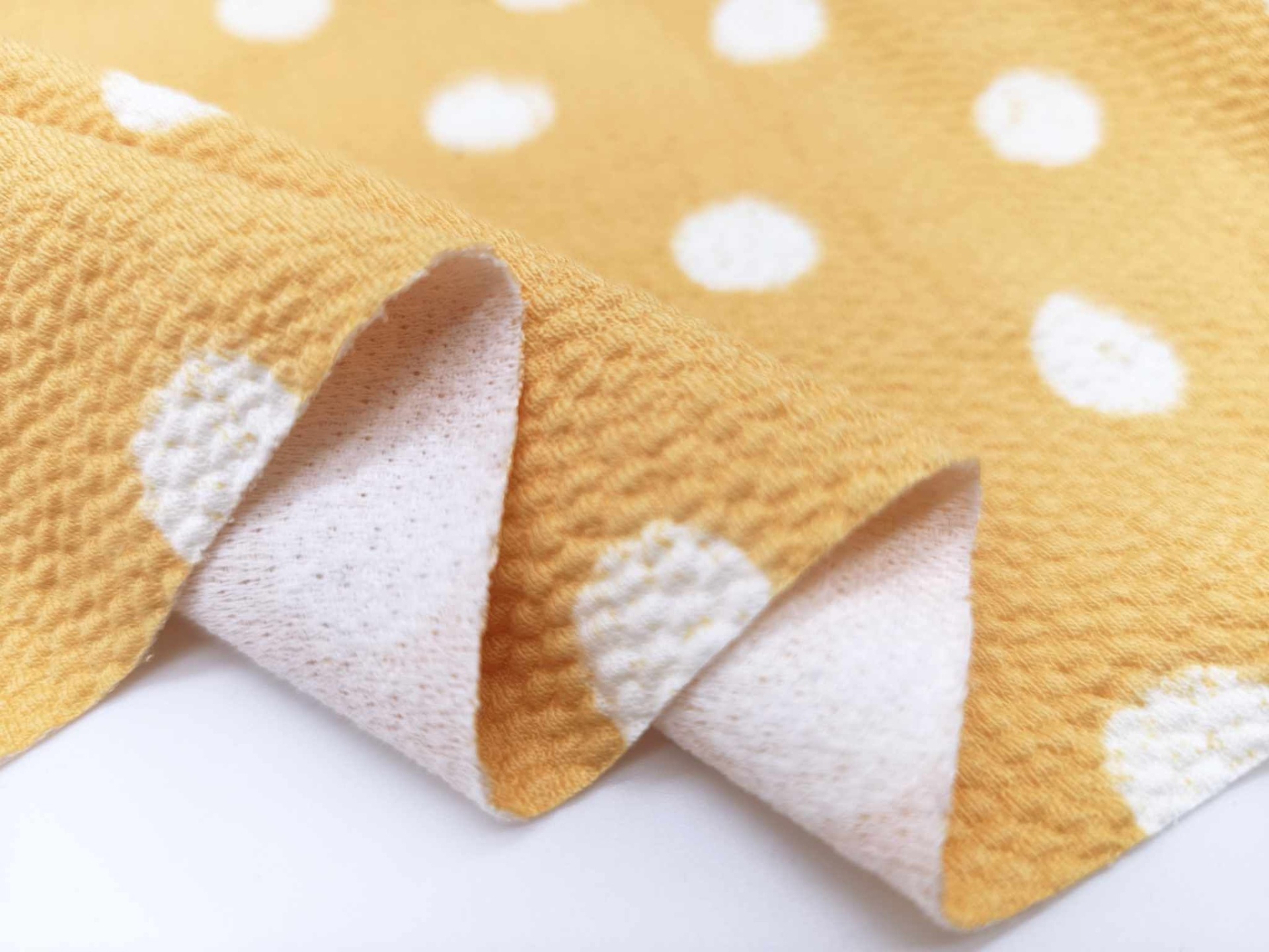 Tejido con relieve, suave, maleable, fresco, con elasticidad en sentido transversal.