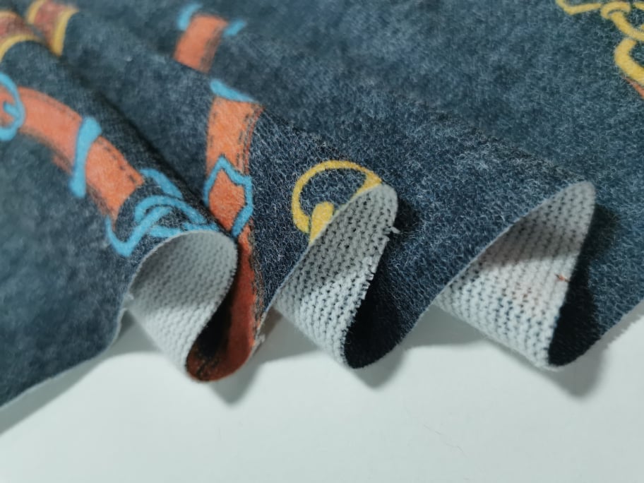 Malha tricotada bastante confortável, bom caimento, de toque muito agradavel