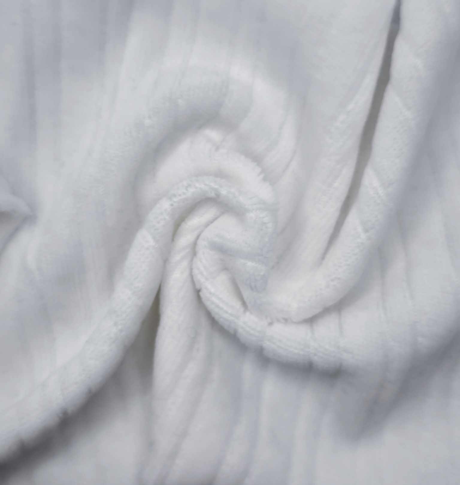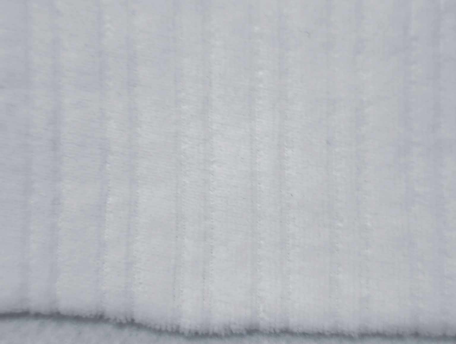 Malha toque aveludado, macia, alguma elasticidade, super confortável, canelado imitação de bombazine