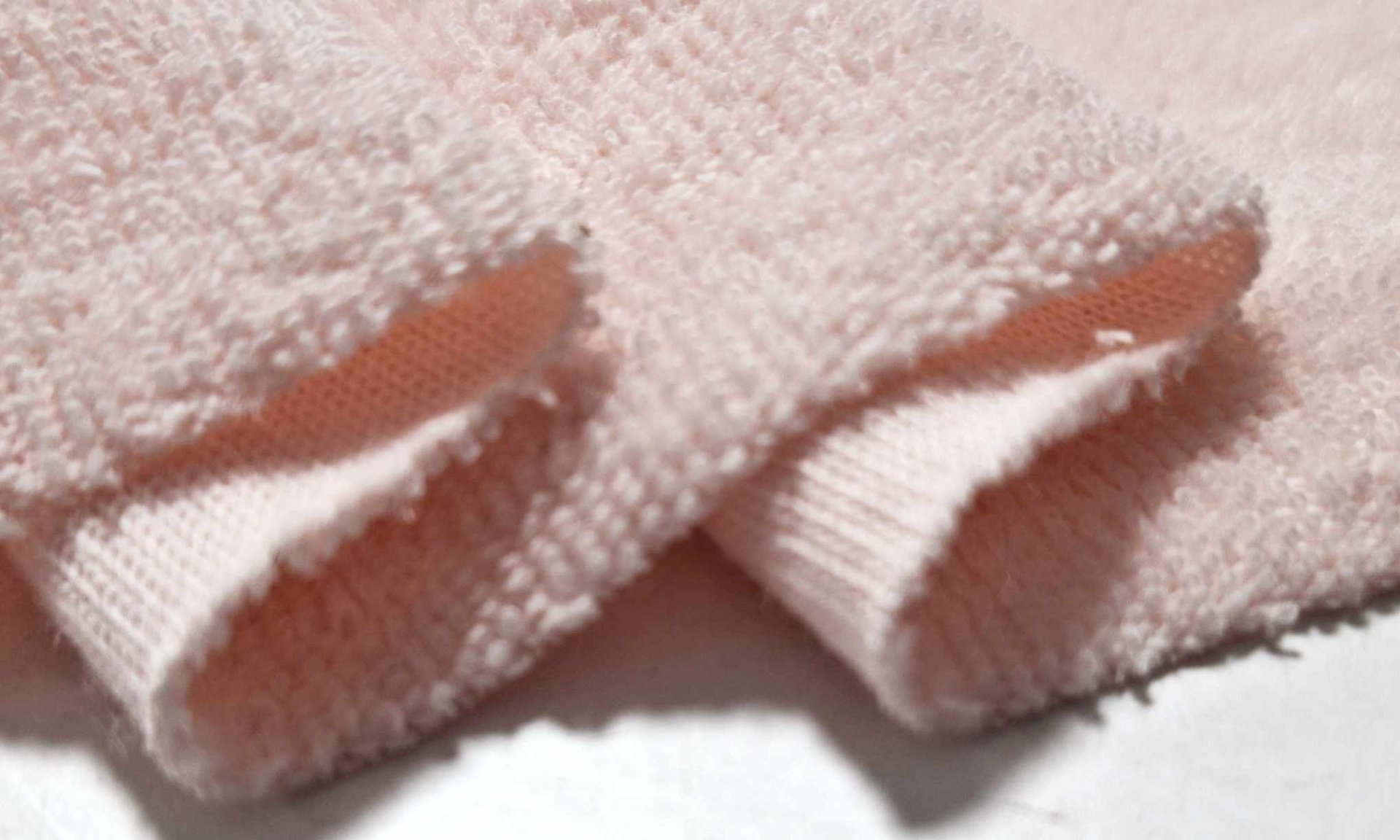 Malla de algodón turco, suave por un lado y con efecto turco por el otro, maleable, ligeramente elástica y absorbente.