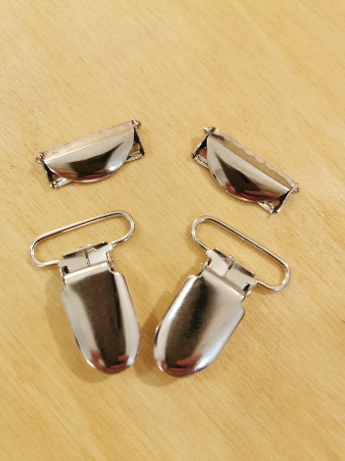 Pack de resortes y reguladores para tirantes metálicos, con dientes de plástico para no dañar la ropa.