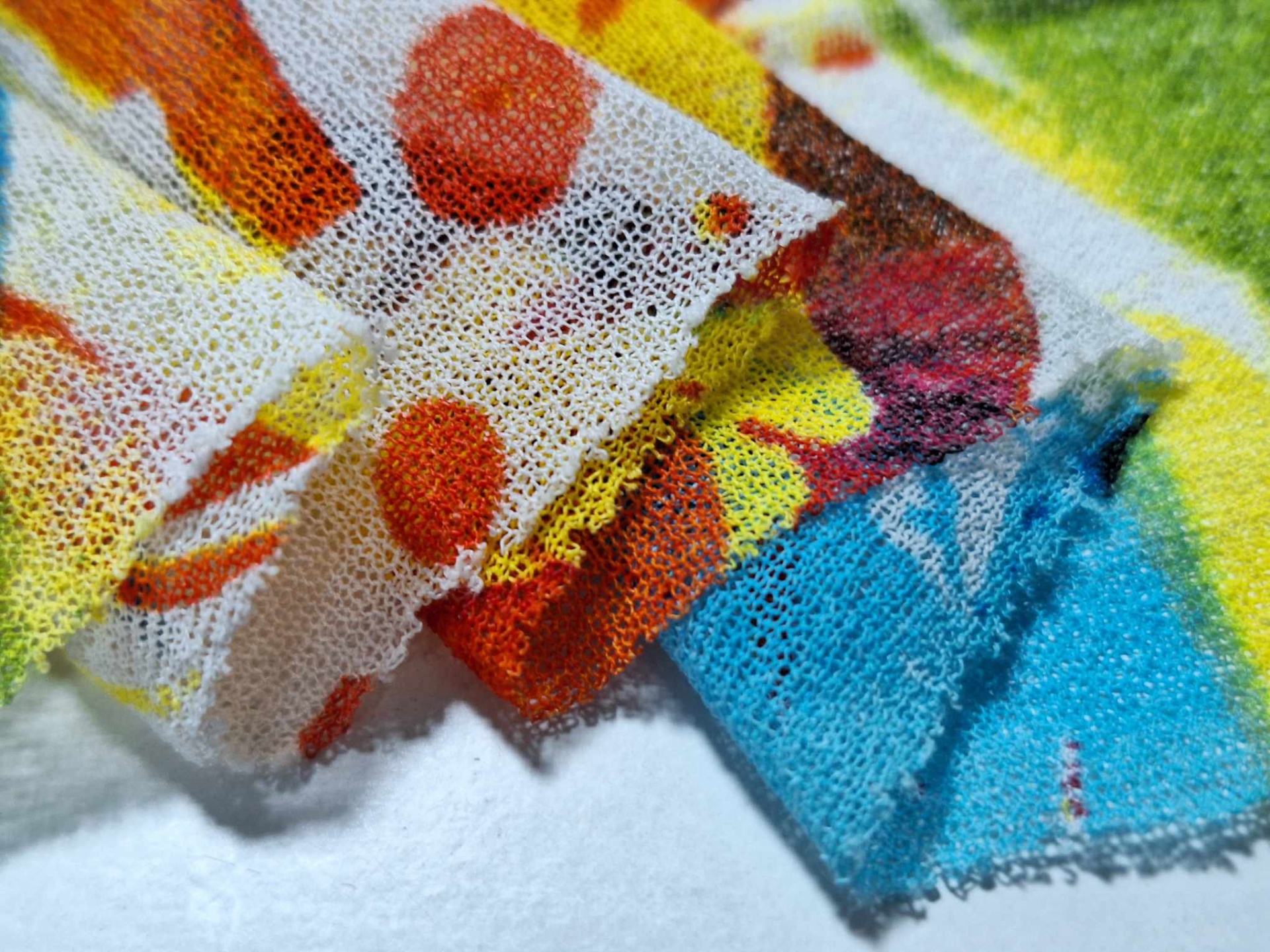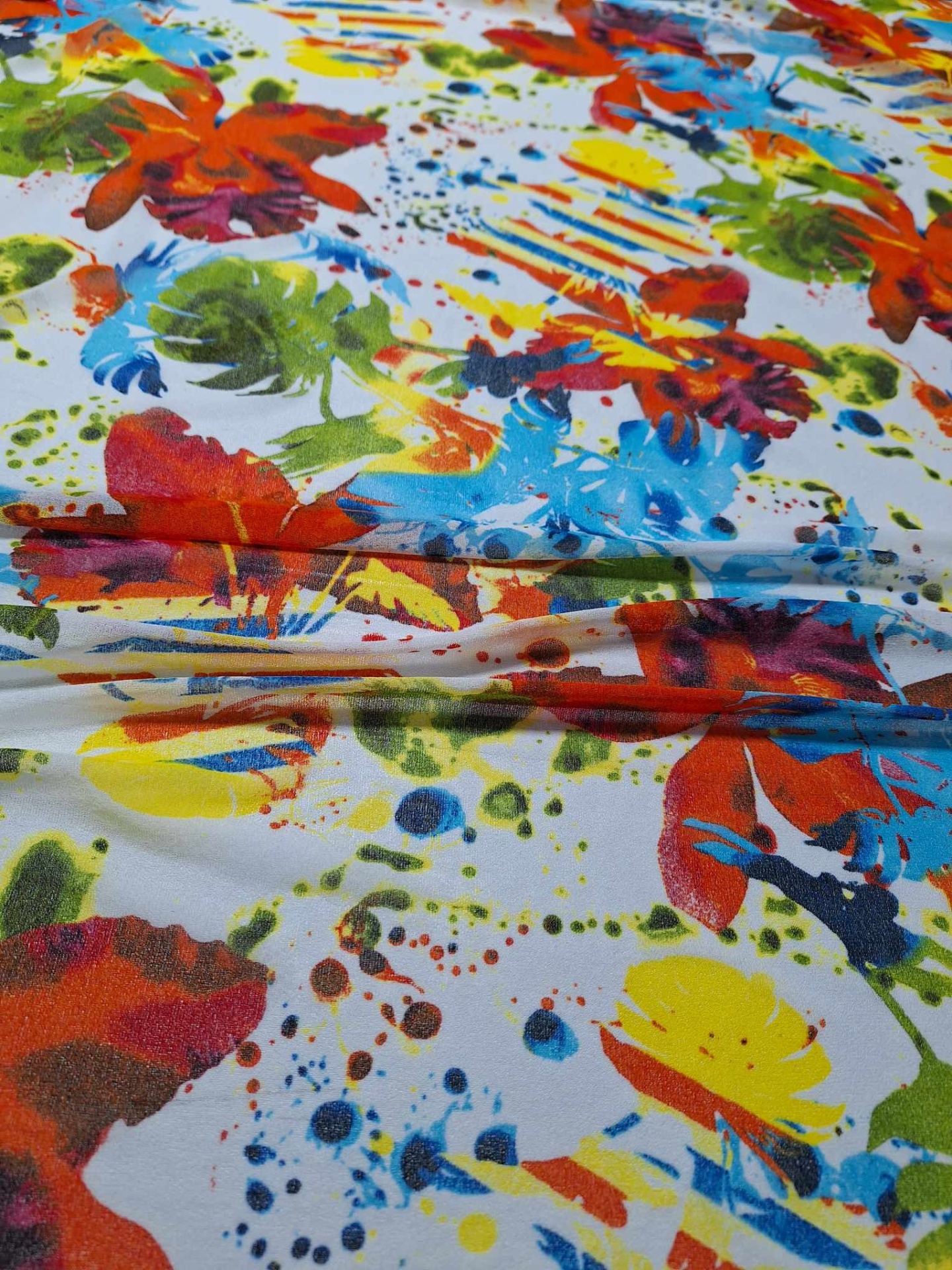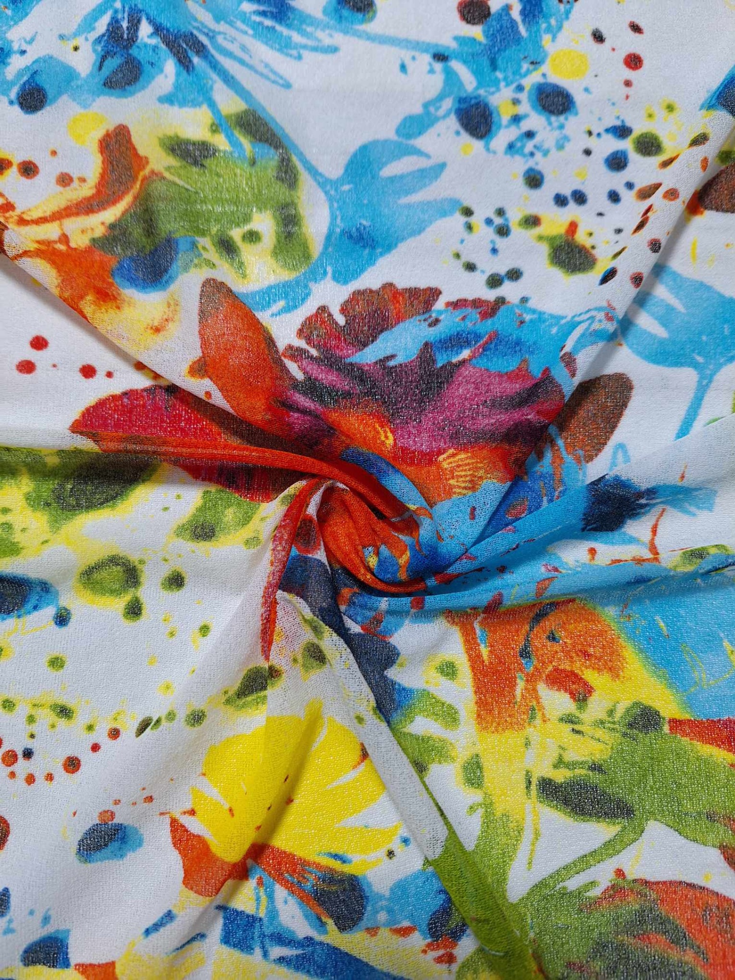 Tecido rede estampado ,transparente, leve, com muito boa elasticidade, padrão colorido, sem brilho