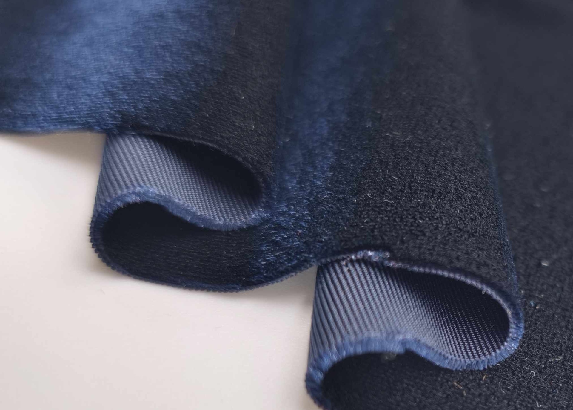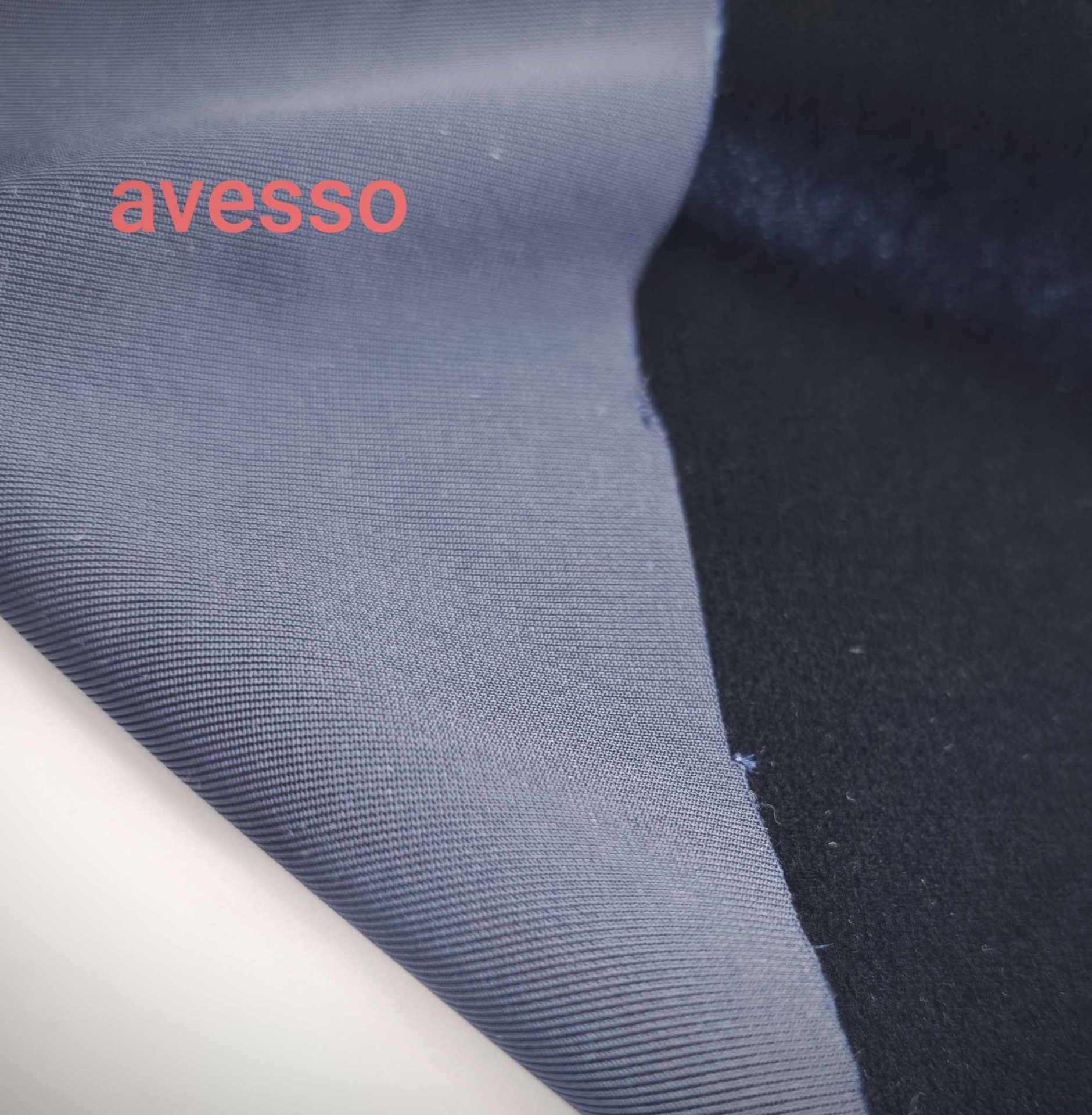Malla de color azul marino, ligero brillo, elástica en todas las direcciones, pelo corto.
